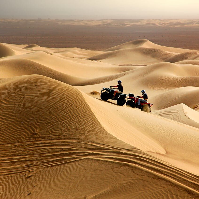 Feel the rush as you take control of a quad bike across Dubai’s expansive desert terrain. Tackle soft dunes, curves, and dusty tracks with safety gear and guidance from experienced guides. Whether you're a beginner or seasoned rider, this activity delivers fast thrills, unforgettable views, and memories that stick.